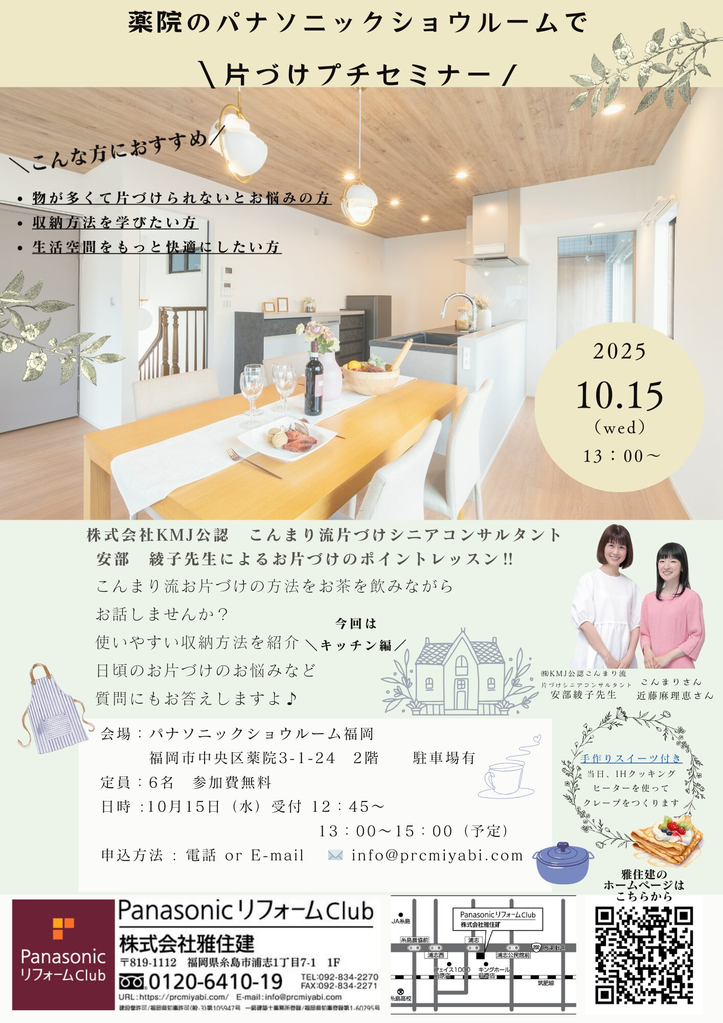 「片づけで人生が変わる」——こんまり流片づけシニアコンサルタント・安部先生による、心と空間を整えるプチセミナーです。
